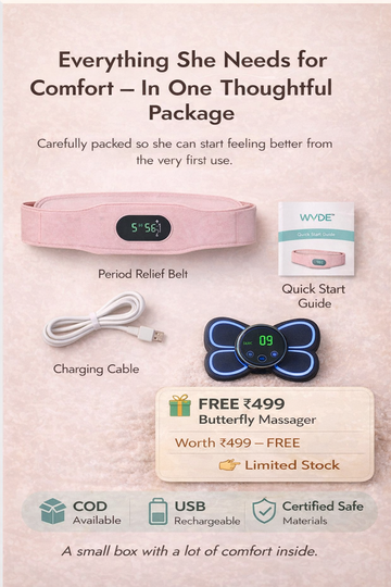 Gentle, soothing warmth increases blood flow exactly where cramps begin — helping her body relax naturally within minutes.